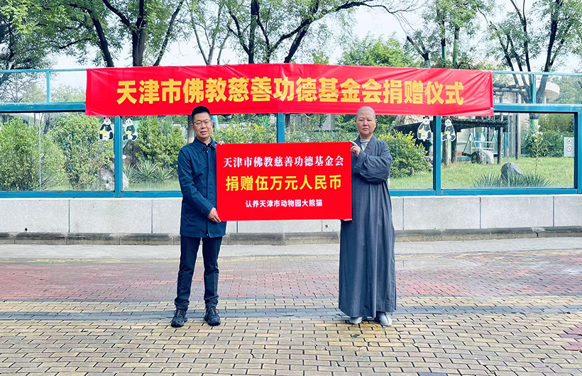 2025年10月11日,天津佛慈基金会和荐福观音寺的法师来到天津动物园认养国宝大熊猫并捐助认养款五万元。通过善举呼吁全社会提高动物保护的意识,并推动中国动物保护事业发展壮大。树立人与自然、人与动物和谐相处的思想,尊重生命、珍惜生命的意识。